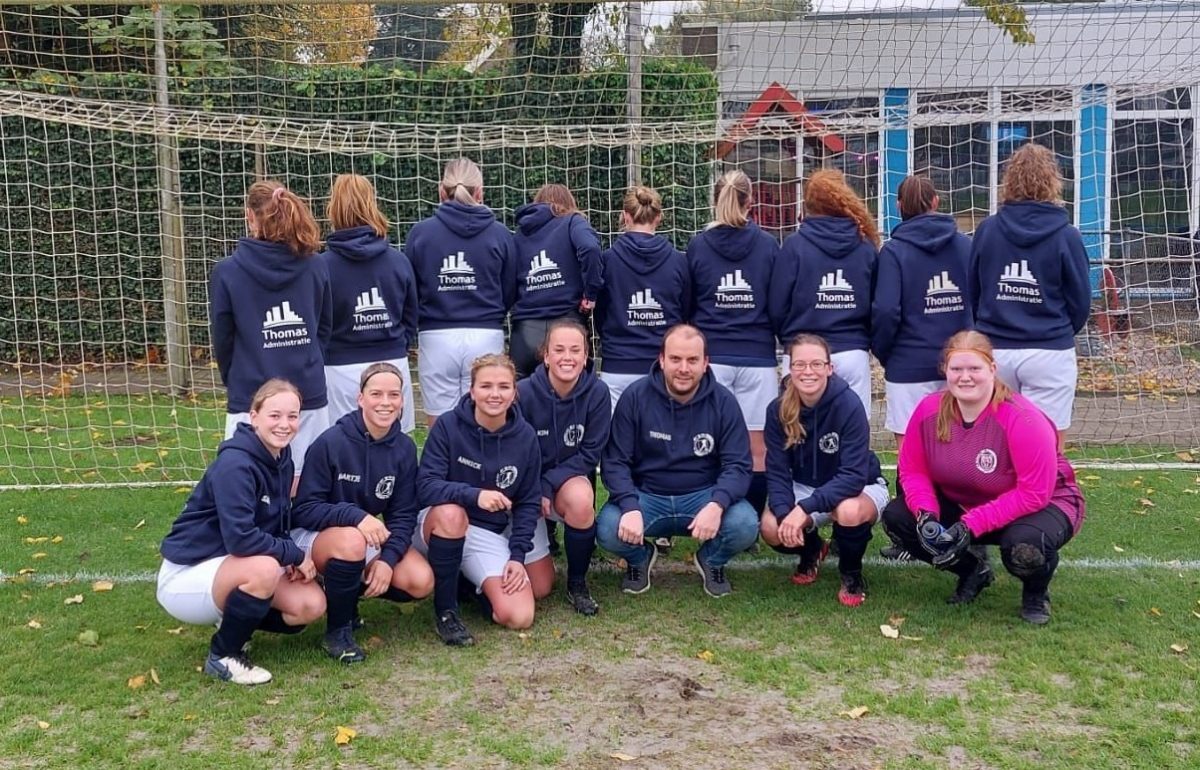 Thomas Administratie sponsort truien dames zaterdag 1 Blauw Wit